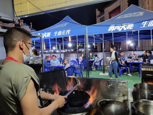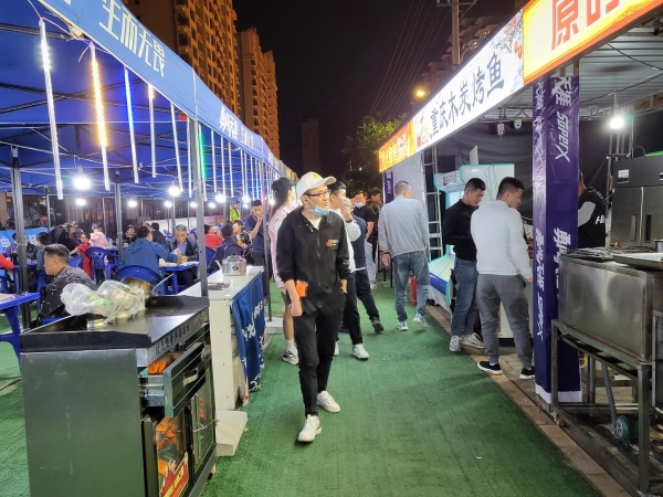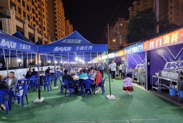夜灯初上,通渭县西环路人来人往,车辆络绎不绝。趁着这个端午假期,人们纷纷来到这里,端起酒杯、品着小吃,在夜色下享受美好的假日时光。