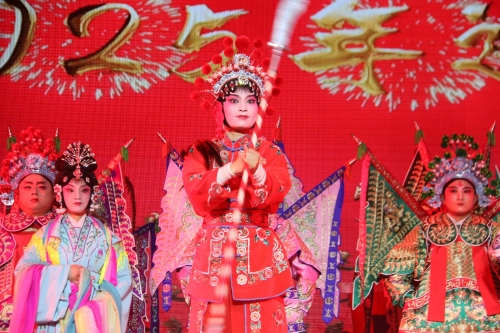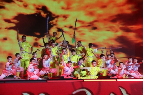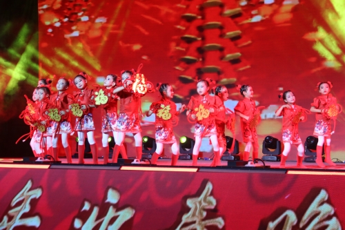 伴随着铿锵有力的锣鼓声,晚会在激情洋溢的开场舞《金蛇迎春》中拉开帷幕。原创快板《福娃拜新年》、舞蹈《福娃闹新春》、情景表演《红旗漫卷长征路》、舞蹈《笔墨春秋》、歌舞情景剧《绣红旗》、歌伴舞《春风十万里》、舞蹈《灵泉新韵》、武术《武动盛世》等一个个精彩节目轮番上演,不时博得观众阵阵喝彩,晚会在歌曲《难忘今宵》的悠扬旋律中圆满落幕。