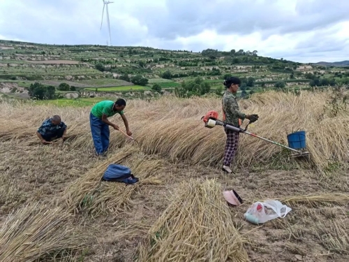 不少农户选择人工收割的方式。他们挥动镰刀,动作娴熟地割倒洋麦,一捆一捆地码放整齐,人工收割的大娘表示:“人工割虽然慢些,但能收得更干净,一粒麦子都不糟蹋!”
